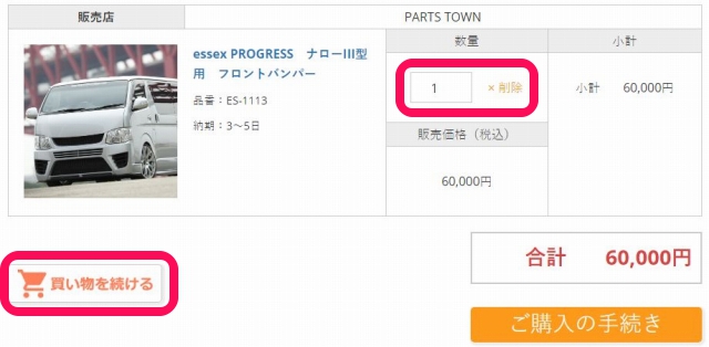 カート内で数量の変更が可能です。商品をカートに入れた後もお買い物を続けることができます。